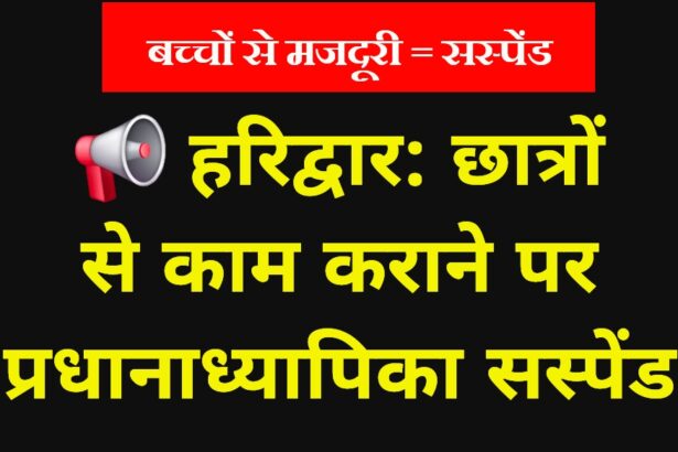 डीएम मयूर दीक्षित के निर्देश पर त्वरित कार्रवाई, बाल श्रम और शिक्षा अधिकार कानून के उल्लंघन का मामला हरिद्वार, 20 मार्च 2026। जनपद हरिद्वार में शिक्षा विभाग ने सख्त रुख अपनाते हुए राजकीय प्राथमिक विद्यालय अजीतपुर, बहादराबाद की प्रधानाध्यापिका को तत्काल प्रभाव से निलंबित कर दिया है। यह कार्रवाई मीडिया में प्रकाशित समाचार का संज्ञान लेते हुए जिलाधिकारी मयूर दीक्षित…